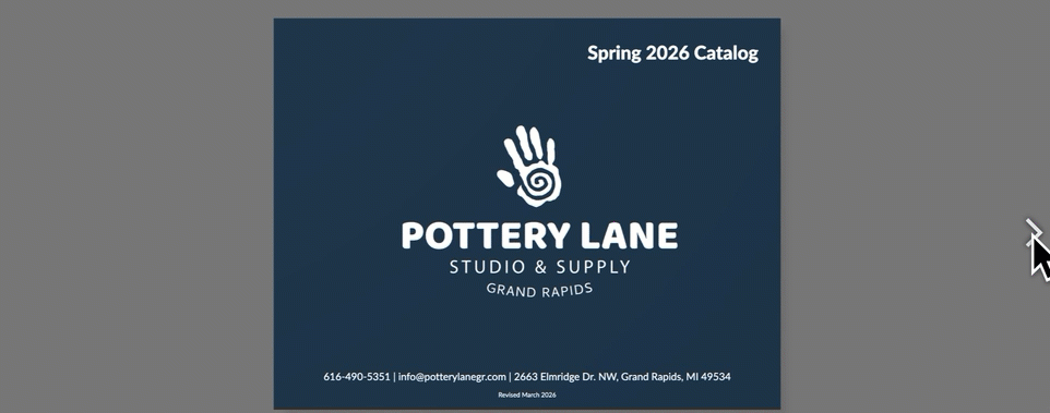 Our catalog showcases our wide range of clay, chemicals, glazes, products and equipment we sell at Pottery Lane.